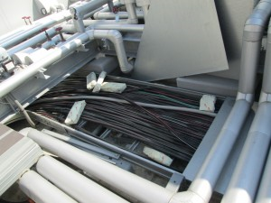 施設建物屋上のキュービクル設備より電源を引き出し、井水ろ過装置制御盤へ配管、配線をし、電源を接続します。