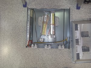 LED電球が取り付けれるように照明器具を改造する工事です。